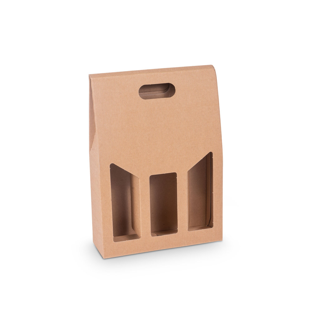 Details S0257 Flaschentragekarton Tragekarton für Flaschen - stabil & vielseitig Hochwertiger Karton für 0,75 l Flaschen (max. 330mm Höhe, 90mm Durchmesser). Ideal für sicheren und stilvollen Transport.