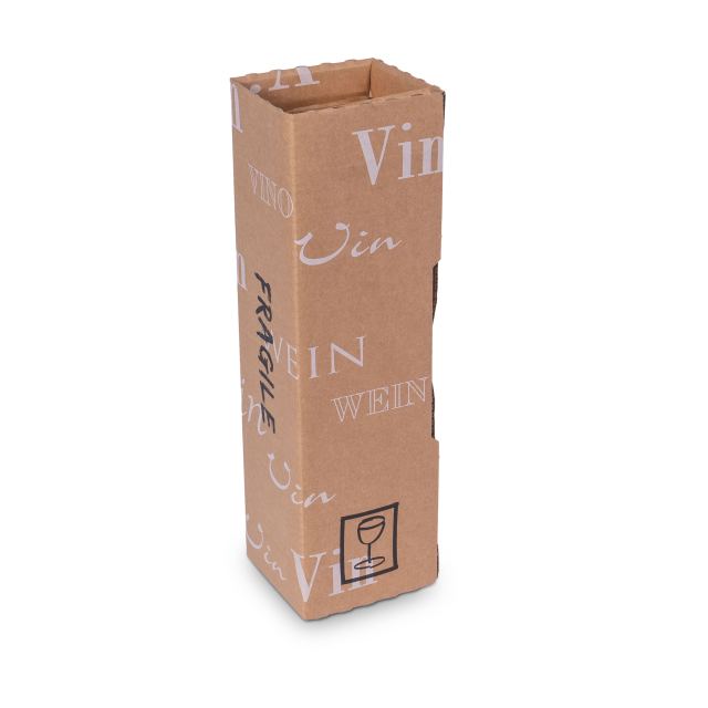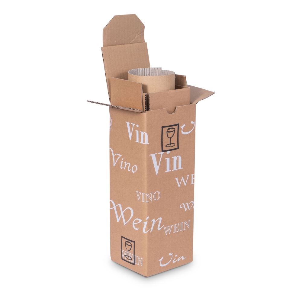 Details 7101T Wein-/Flaschenkarton für 1 Flasche 0,5/0,75L - wenn gewünscht Einlage 7701 1x dazu bestellen Spezialverpackung zum sicheren Versand von Flaschen, wie z.B. für Wein oder Bier im Design «Trans-Scripto». Mit wiederverschliessbarem Deckel. Einfacher Aufbau ohne zu kleben. Besonderer Schutz durch Knautschzonen am Kopf und Fuss der Verpackung. Für ideale Sicherheit an den Seiten empfehlen wir zusätzliche Einlagen zu verwenden. - Product Name: Wein-/Flaschenkarton für 1 Flasche 0,5/0,75L - wenn gewünscht Einlage 7701 1x dazu bestellen