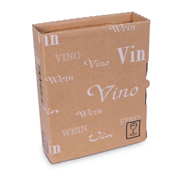 Details 7103T Wein-/Flaschenkarton für 3 Flaschen 0,5/0,75L - wenn gewünscht Einlage 7701 3x dazu bestellen Spezialverpackung zum sicheren Versand von Flaschen, wie z.B. für Wein oder Bier im Design «Trans-Scripto». Mit wiederverschliessbarem Deckel. Einfacher Aufbau ohne zu kleben. Besonderer Schutz durch Knautschzonen am Kopf und Fuss der Verpackung. Für ideale Sicherheit an den Seiten empfehlen wir zusätzliche Einlagen zu verwenden. Die Einlagen müssen mit Artikel 7701 separat bestellt werden. - Product Name: Wein-/Flaschenkarton für 3 Flaschen 0,5/0,75L - wenn gewünscht Einlage 7701 3x dazu bestellen