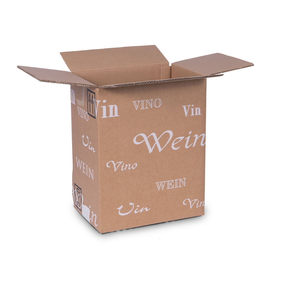 Hochwertige Flaschenverpackungen aus Karton mit Kartonmantel, Faltdeckel und günstigem Preis-Leistungs-Verhältnis. Diese Sammelpackungen eignen sich ideal für den Camionversand einer oder mehreren Flaschen. Es sind Sammelpackungen für liegende- oder stehende Flaschen verfügbar.