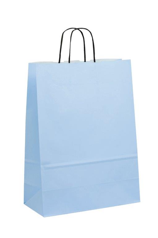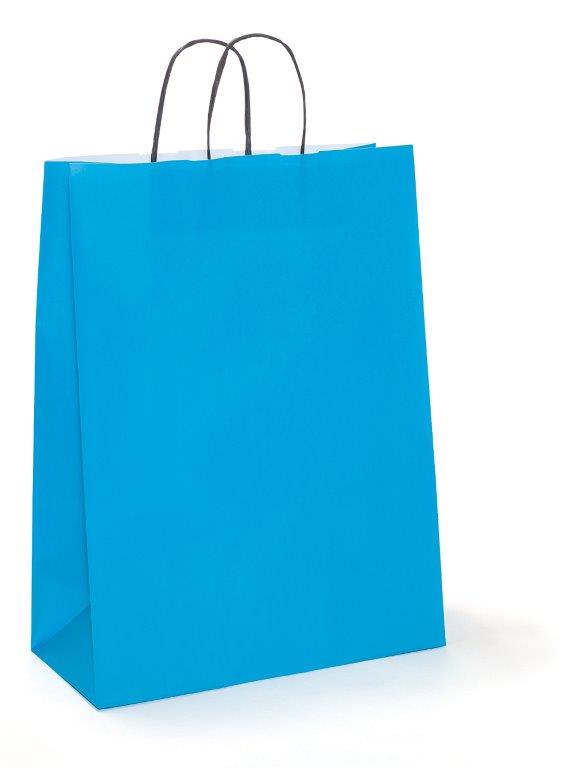 Details 61228 Tragetaschen aus Papier Schöne bunte Tragetaschen aus Papier mit einer schwarzen oder weissen gedrehten Papierkordel Diese Taschen sind in diversend Abmessungen und Grammaturen erhältlich. - Product Name: Tragetaschen aus Papier