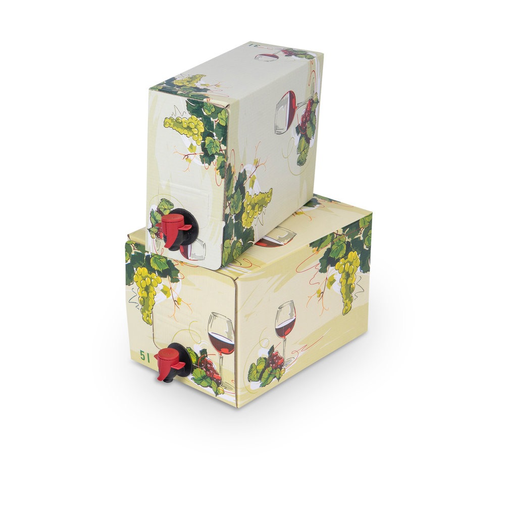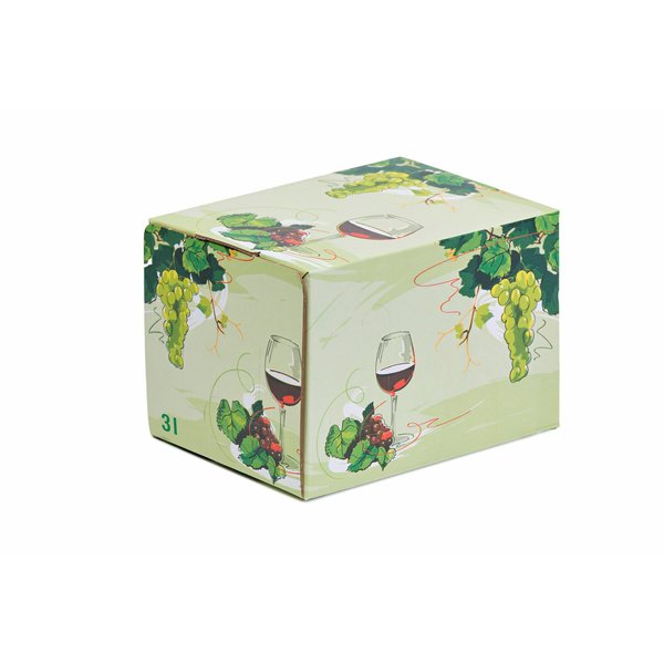 Bag-in-Box Karton weiß mit Druck Weinglas und Traube