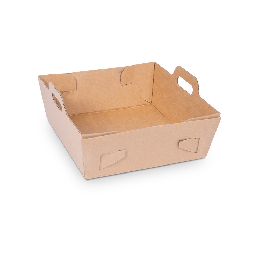 Stabile Kartonschale mit Tragegriff, flach angeliefert und leicht aufzurichten. Ideal für frisches Gemüse - in verschieden Größen erhältlich. Praktisch, umweltfreundliche und optisch ansprechend.