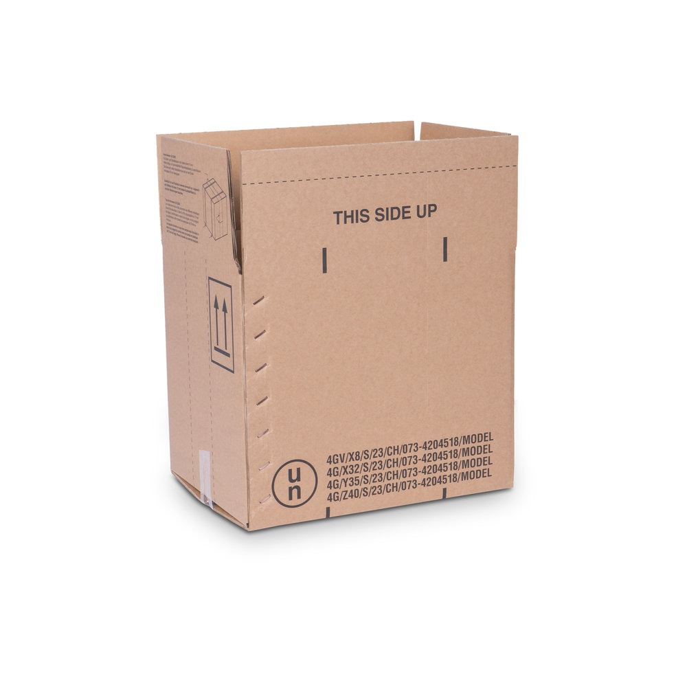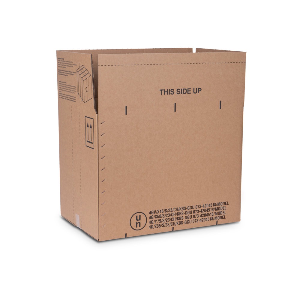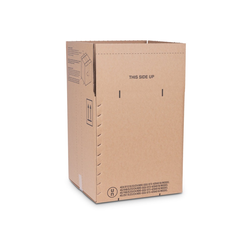 Gefahrgutkarton UN90/85 570x370x430mm Box aus Wellkarton zum sicheren Transport von gefährlichen Gütern im Land-, Schienen-, Luft- und Seeverkehr. Geeignet für Kl. 3: entzündbare Flüssigkeiten, Kl. 1.4: explosive Stoffe, Kl. 9: verschiedene gefährliche Stoffe und Gegenstände, Kl. 5.2: organische Peroxide u.v.m. Verfügbar in diversen Größen. In der Rubrik UN-Gefahrgutboxen finden Sie auch die entsprechenden Kunststoff-Innenbeutel, Gefahrgutetiketten und Gefahrgut-Füllmaterial.