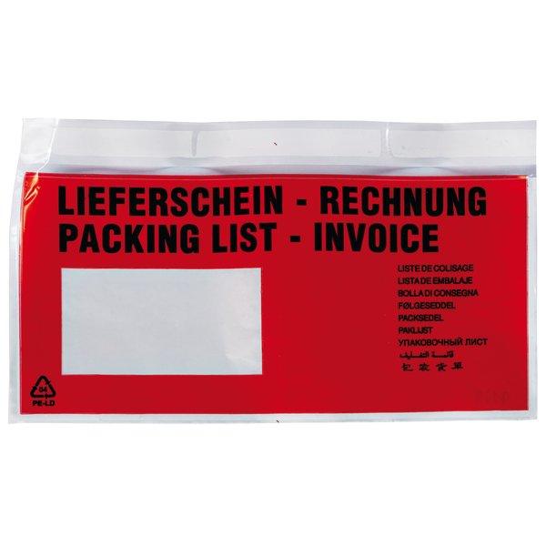 Die selbstklebende Dokumententaschen für den sicheren und geschützten Versand ihrer Lieferscheine, Rechnungen, Dokumente, usw.